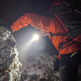 Kaj se je zgodilo? 6. 11. 2023 smo že v mraku – malo čez 17.00 – prejeli poziv na reševanje tuje državljanke, ki se je zaplezala Na Križu, skoraj 2500 m visokem vrhu v bližini Kokrške Kočne. Prosili smo za pomoč helikopterja LPE, ki je sprva poskusil z reševanjem iz zraka, a zaradi oblakov in močnega vetra naposled ni mogel pomagati s transportom moštva. Stekla je naporna klasična akcija, ki je potekala celo noč – dobesedno! Najprej smo se zbrali pri Suhadolniku, nato lomastili čez Taško ter po vedno neugodni planinski poti čez Grdi graben v Dolce. Pred nami je udarna ekipa že plezala proti vršnem grebenu, ko smo mi zadaj kot potepuški psi iskali zavetja v bivaku pod Kočno, kamor smo se naposled poskrili pred orkanskim vetrom. Za tiste zgoraj te možnosti ni bilo – le v mislih smo jim pošiljali toplo spodbudo, zveza radijske postaje je bila rezervirana namreč za kratko, bolj uradno komunikacijo. Če nam je bivak sprva nudil toplo zavetje, pa so se naša prepotena telesa tudi tam začela hitro ohlajati. Termometer je kazal 7 °C, a počasi smo, kljub temu da pokriti z dekami, začeli drgetati. Nekoliko nas je ogrela novica, da je naša predhodnica gospo dosegla in da z njo že pričenjajo sestop. In kmalu za tem smo dobili navodilo, da jim krenemo naproti. Ni bilo lahko zapustiti bivaka, saj nas je zunaj pričakal veter, na katerega smo že skoraj malo pozabili. Prvih sto metrov je bilo mučnih – tresli smo se, a z gibanjem se telo prav prijetno ogreje – da le ima še energijo! Na nadmorski višini nekje čez 2200 m smo se srečali s prvimi, ki so zaplezano vodili na kratki vrvi. Veselja, ko smo v daljavi ugledali lučke in naposled tudi prepoznali zmrznjene obraze kolegov, ni mogel skaziti niti njen do položaja nekritičen odnos. Stisnili smo zobe, pomislili na kaj prijetnega daleč spodaj v dolini in korak za korakom počasi sestopili jutru naproti.