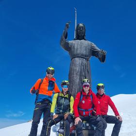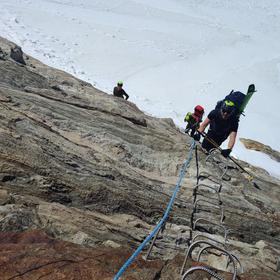 V nedeljskih večernih urah 8.6.2025 se zberemo ter dodobra napolnimo društveni avto in se odpravimo proti Alagni. Zjutraj prispemo v Italijansko vasico, se dodobra oprtamo z opremo in se preko treh gondol ter dobre ure hoje ustalimo za 4 noči v koči Gnifetti. Naslednje dni smo izkoristili lepo in nenavadno toplo vreme za obisk štiritisočakov v okolici, turno smučanje po prostranih zasneženih ledenikih, povadili in obnovili smo tudi tehniko hoje ter reševanja iz ledeniške razpoke in se dodobra aklimatizirali na izziv, ki nas je čakal. V četrtek smo se vrnili v dolino in se dodobra spočili.