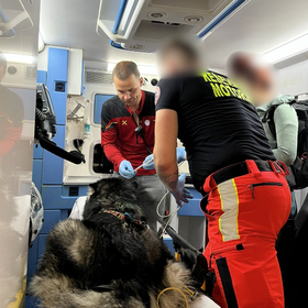 “Lastnici sem ob klicu povedal, naj ima psička iztegnjen jezik, vrat in da naj psička miruje ter da naj se obrne na 112 za pomoč pri transportu. Nekaj minut po tem sem iz regijskega centra za obveščanje Kranj na kliniko prejel klic in pričela se je organizacija prevoza psičke. Psičko in lastnico je iz kraja nesreče pobral helikopter Slovenske policije z dežurno GRZS ekipo z Brnika. Organizirali smo, da je helikopter iz kraja nesreče pristal na heliportu UKC LJ, v vmesnem času smo na kliniki pripravili vse potrebno za njeno primarno oskrb. Organizirali smo reševalno vozilo, ki je iz heliporta poskrbel za prevoz psičke do Klinike za male živali. Že med transportom smo psičko pregledali, ji začeli dovajati infuzijo in zdravila proti bolečinam. Lastnici je bilo omogočeno spremljanje psičke do klinike, psička pa je bila na Kliniki za male živali hospitalizirana na intenzivnem oddelku,” pove Žan Karničar.
