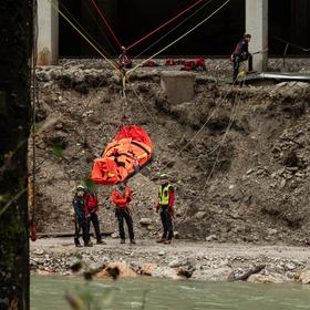 9:58 - na desni breg prepeljana težje poškodovana oseba, Tiromont nosila,