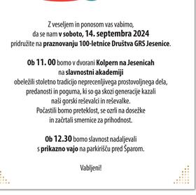 You are invited to join us on Saturday, September 14, 2024, to celebrate the day of mountain rescuers and the 100th anniversary of the GRS Jesenice Mountain Rescue Association.