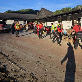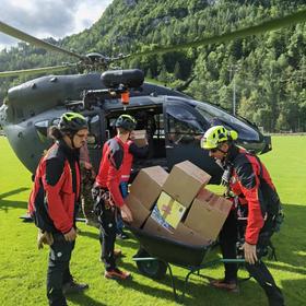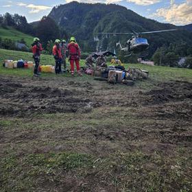 Kot smo poročali, je ekipa 20 gorskih reševalcev z različnih društev GRS danes zjutraj s tremi helikopterji Slovenske vojske odletela na pomoč prebivalcem Koroške in GRS Koroške, ki so v poplavah izgubili prostore, opremo in vozila. Odpeljali smo jim nekaj reševalne opreme, predvsem pa smo jim priskočili na pomoč pri oskrbi in evakuaciji prebivalcev.