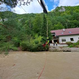 Naše ekipe so v Črni na Koroškem pregledale vse nedostopne višje ležeče terene, ki so ostali odrezani od dostopa do oskrbe. Peš in tudi s helikopterji Slovenske vojske ter madžarskimi helikopterji smo jim odnesli vsa potrebna zdravila, vodo, hrano, oblačila, gorivo, agregate in se trudili širiti pogum in upanje, kljub težkih razmeram. Pomagali smo noseči mamici in njenih otrokom. S pomočjo helikopterja smo jih evakuirali iz ogroženega in nedostopnega terena, da bodo lahko na varnem v prihodnjih dneh počakali prihod novega družinskega člana. Evakuirali smo tudi nekaj drugim oseb, ki so potrebovali nujno pomoč zdravnika. Dotaknila pa se nas je tudi zgodba starejše gospe, ki ni želela zapustiti svojega doma. Po dobri uri prepričevanja je le pristala na polet s helikopterjem Slovenske vojske.